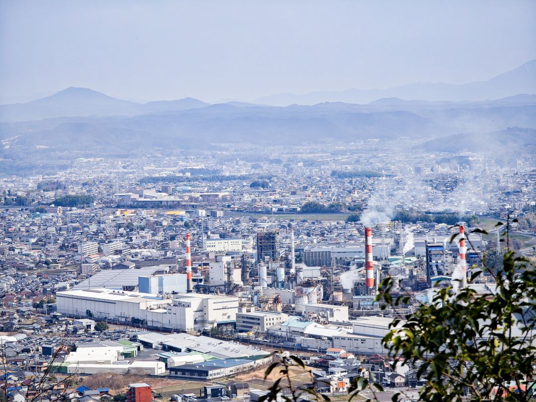 標高313mの大パノラマ。大王製紙の工場がインパクトありますね。
