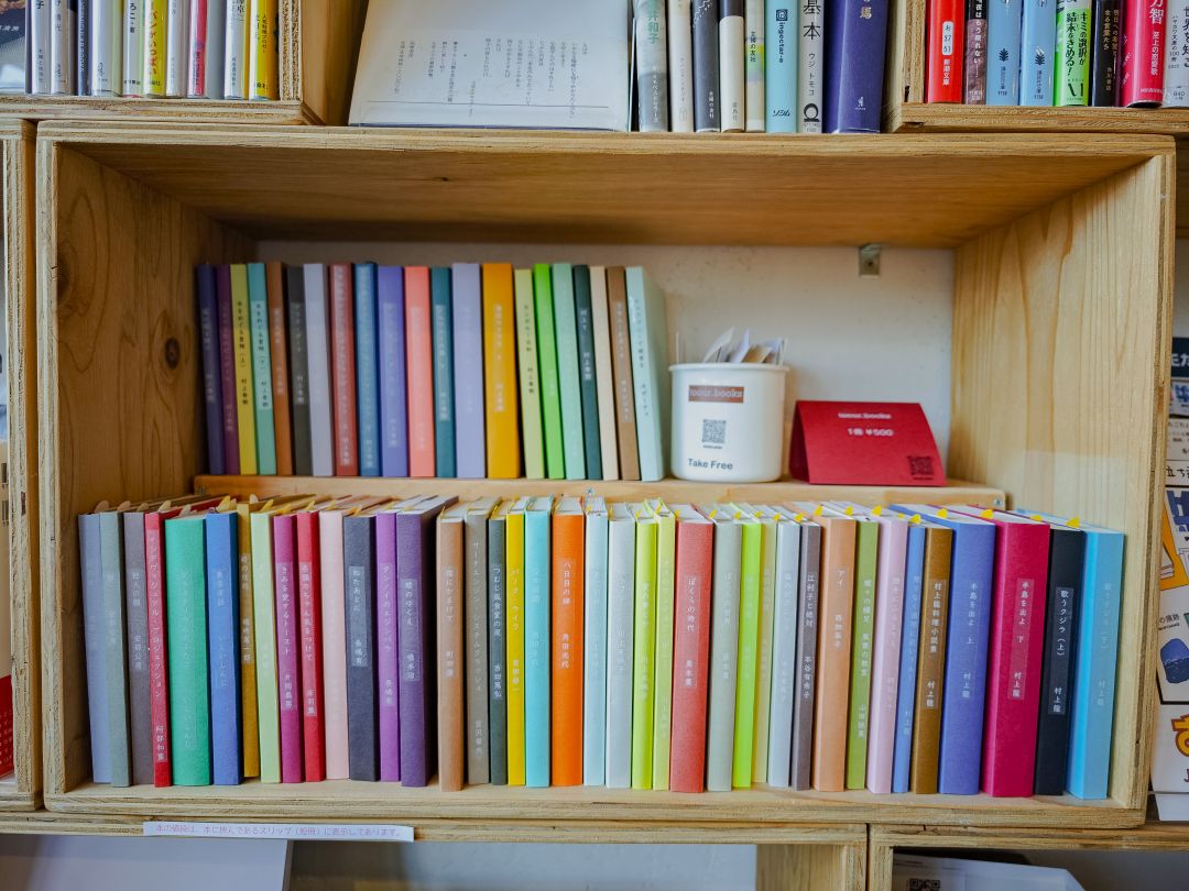 奥の壁際の棚は貸し本棚となっており、棚主ごとのセンスが光るバラエティ豊かな本だなです。