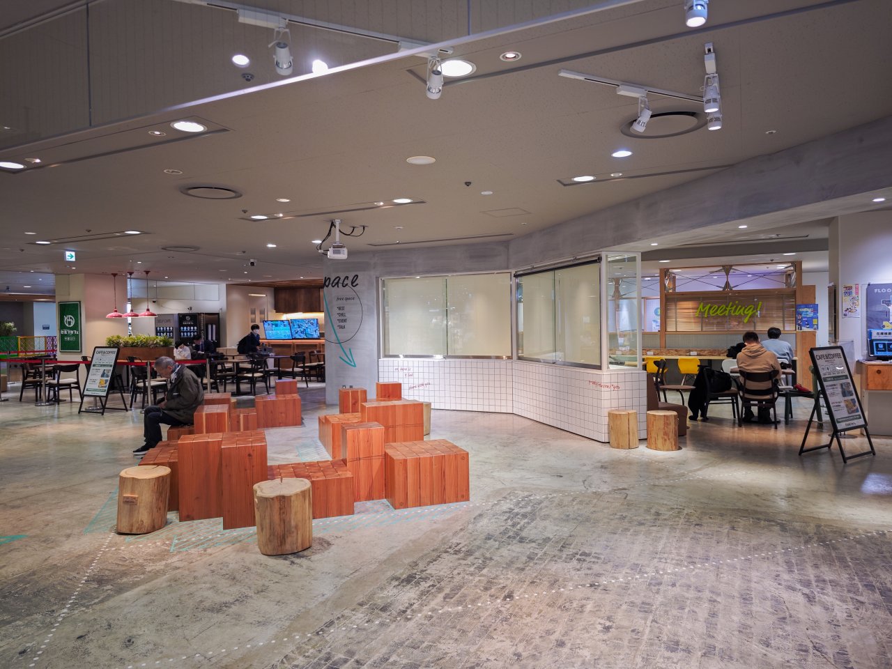 隣には時間制限なく利用できる無人のセルフカフェがあります。Wi-Fi・電源完備で、仕事や勉強利用もOKです。本屋との相性も良くて、これは羨ましいですね。