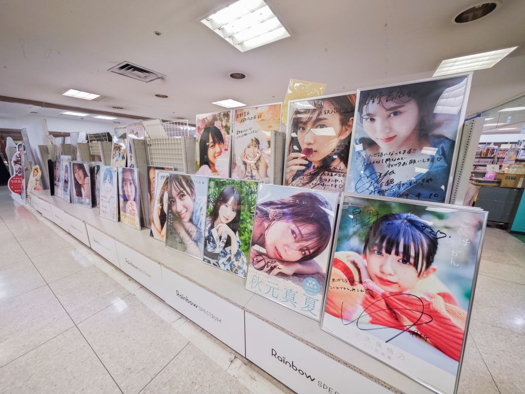 アイドルやグラドルの写真集がずらっと並んでいます。定期的に音楽やアイドル雑誌のバックナンバーフェアや、イベント等を催しているようです。駅からのアクセスが良いことからも、ファンにとっては嬉しい立地の書店ですね。