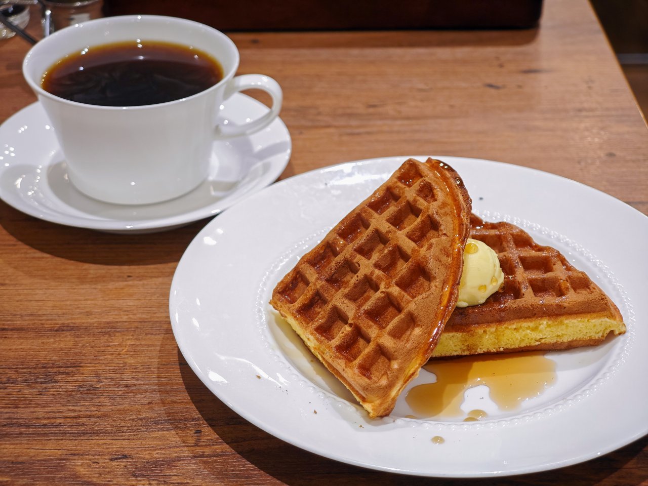 ミニワッフルは書店で1,000円以上購入したレシートで無料になる平日限定サービスです。甘くカリッとしたワッフルはコーヒーとの相性も抜群。