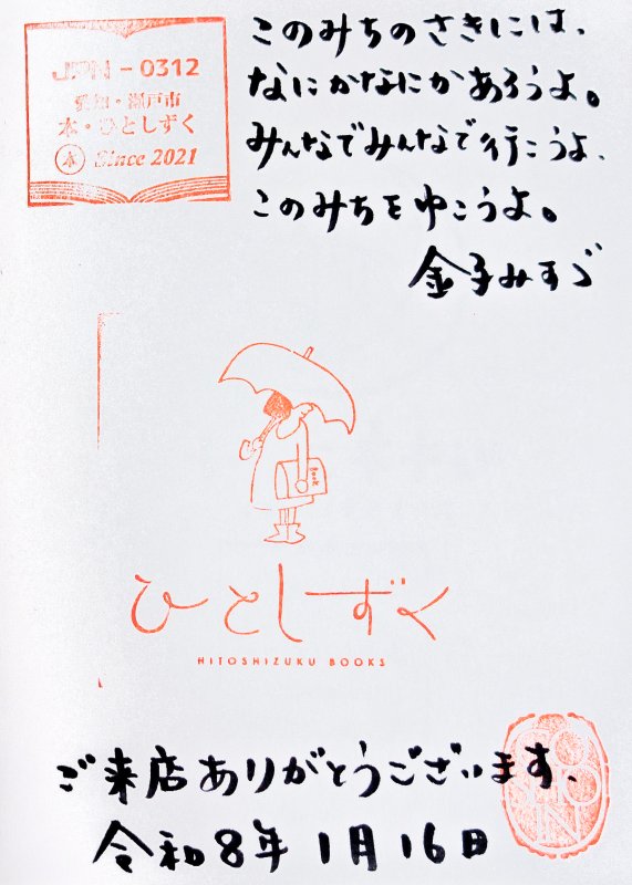 本・ひとしずくが書店として始まるまでの店主のインタビュー記事を読んで、あくまでも勝手な想像ですが、金子みすゞのこの詩が背中を押す形になったのではないかなと思います。