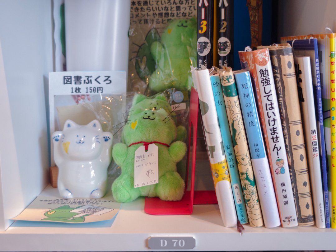 オリジナルグッズのマスコットと本を販売するみどりねこさん。こちらの棚限定か最初の数個限定か、1個500円となっていました。絶対に原価割れしてそうな価格な気がする。