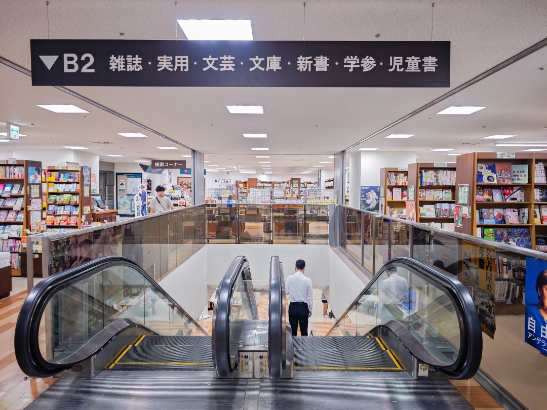 書棚と通路のど真ん中にエスカレーターの存在感が不思議に思えました。