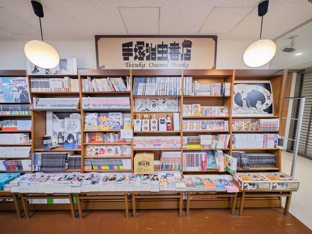 なんといってもこちら、手塚治虫書店コーナーが見どころ。漫画の神様 手塚治虫の関連書籍が集められた棚です。