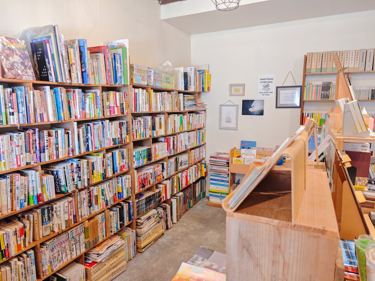 大きなお店ではありませんが、本の収納密度が高くかなりたくさんあるように見えます。棚によっては前面に出ている本の奥にも陳列されていました。蔵書数は3000冊ほどあるようです。
