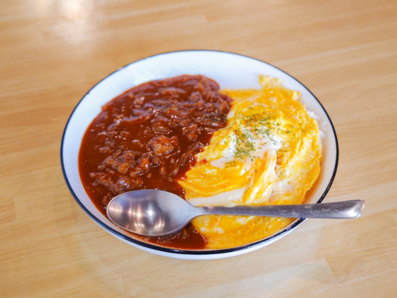 マスタードのきいたホットサンドや、ハヤシのルーみたいなものがかかったオムライスを食べました。がっつり食事もとれるブックカフェですね。